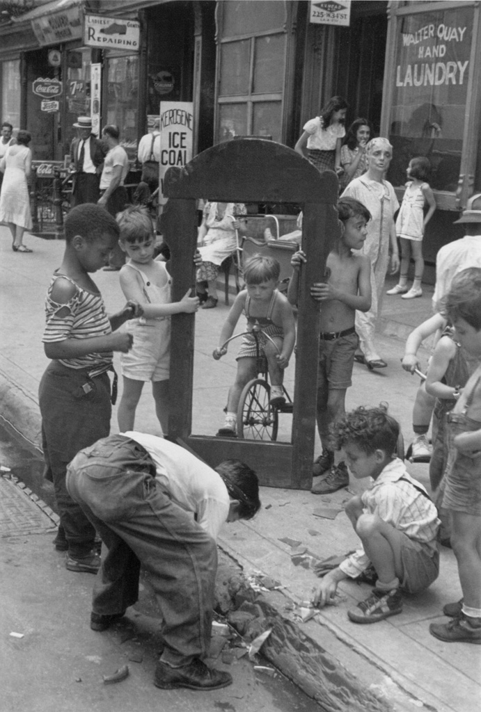 Levitt grew up in Brooklyn. Dropping out of high school, she taught herself photography while working for a commercial photographer. While teaching some classes in art to children in 1937, Levitt became intrigued with the transitory chalk drawings that were part of the New York children's street culture of the time. She purchased a Leica camera and began to photograph these works, as well as the children who made them. The resulting photographs were ultimately published in 1987 as In The Street: chalk drawings and messages, New York City 1938–1948.